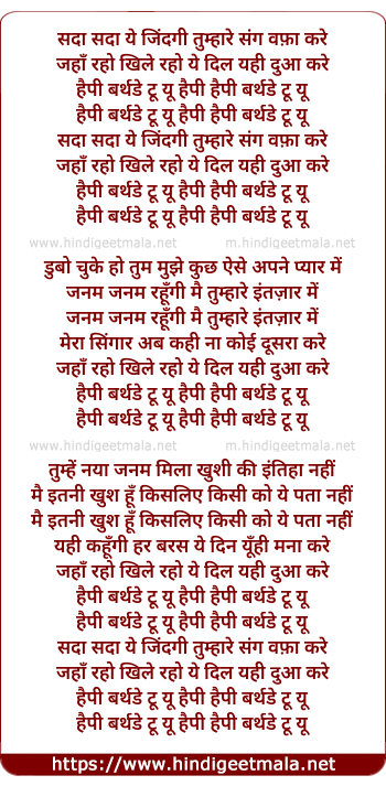 Lyrics of Happy Birthday To U - हैपी बर्थडे टू यू