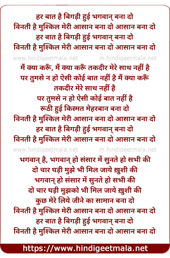 Lyrics of Har Baat Hai Bigdee Huyi Bhagwan Bana Do - हर बात है बिगड़ी हुई भगवान् बना दो