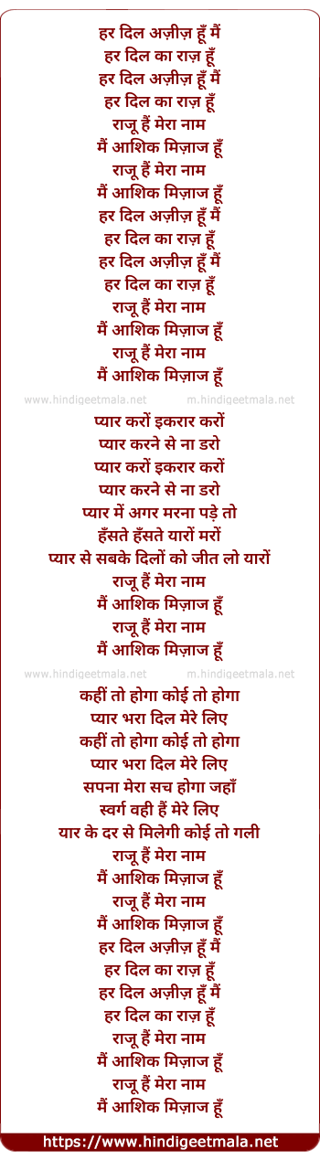Lyrics of Har Dil Aziz Hoon Mai - हर दिल अज़ीज़ हूँ मैं