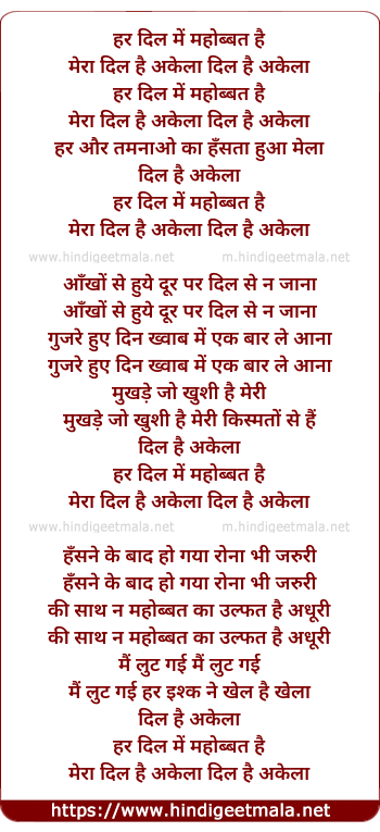 Lyrics of Har Dil Me Museebat Hai - हर दिल में महोब्बत है