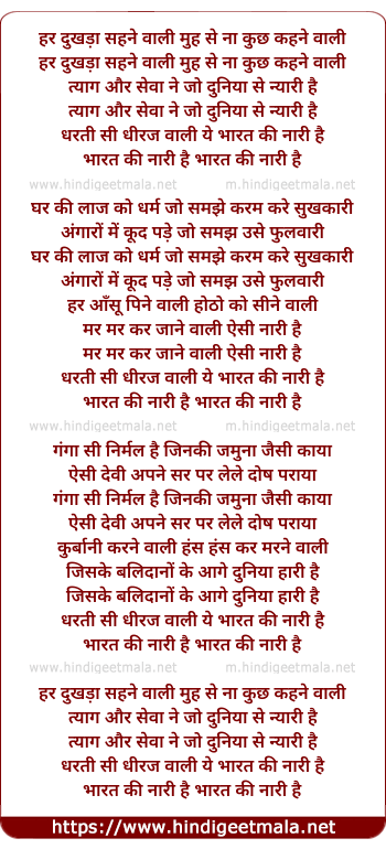 Lyrics of Har Dukhra Sehne Wali, Muh Se Naa Kuch Kahne Wali - हर दुखड़ा सहने वाली, मुह से ना कुछ कहने वाली