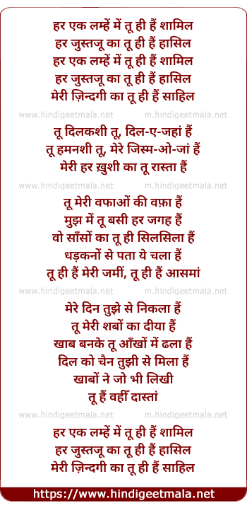 har ek lamhe mein tu hi hai shaamil