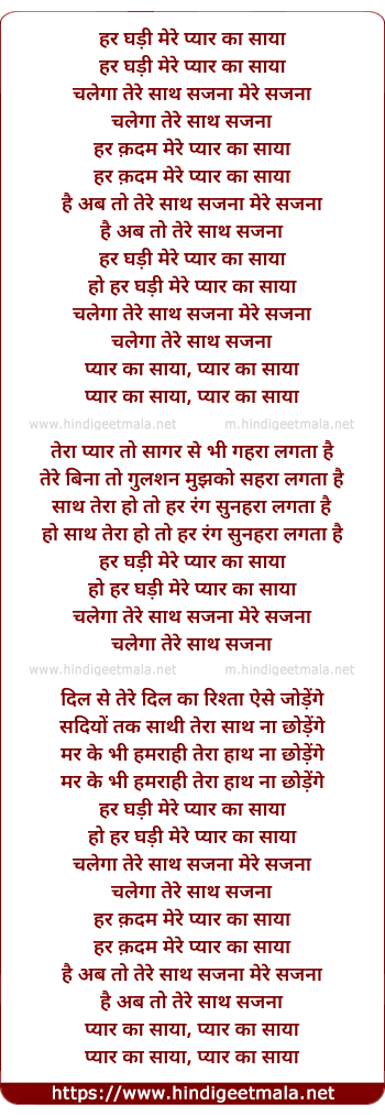 Lyrics of Har Ghadi Mere Pyar Ka Saya (Duet) - हर घड़ी मेरे प्यार का साया