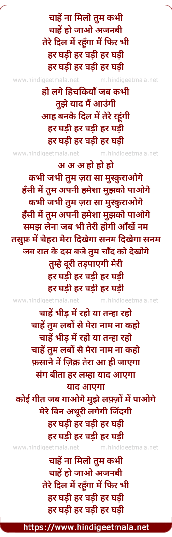 Lyrics of Har Ghadi (Tere Dil Mein Rahunga) - चाहें ना मिलो तुम कभी