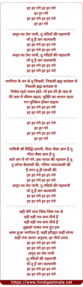 Lyrics of Har Har Gange Har Har Gange - हर हर गंगे हर हर गंगे