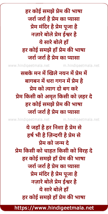 Lyrics of Har Koi Samjhe Prem Ki Bhasha - हर कोई समझे प्रेम की भाषा