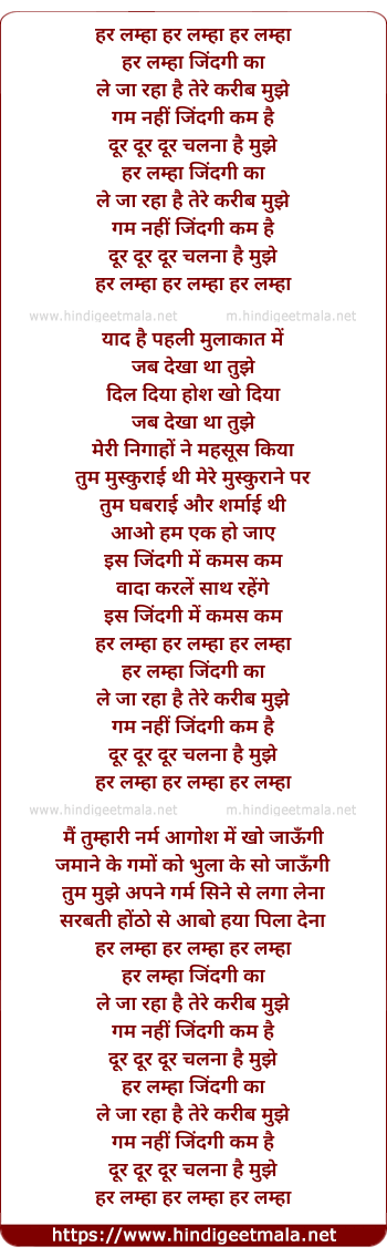 Lyrics of Har Lamha Zindagi Kaa - हर लम्हा जिंदगी का