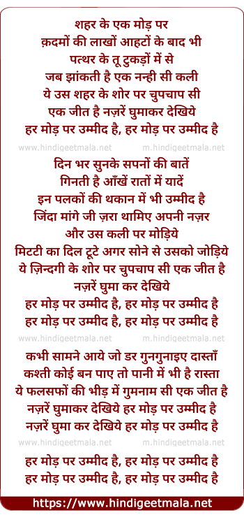 Lyrics of Har Mod Par Umeed Hai - हर मोड़ पर उम्मीद है