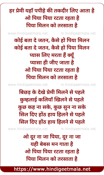 o piya piya ratata rehta hai