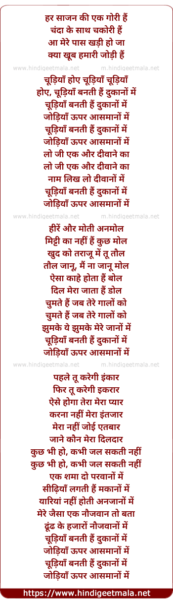 Lyrics of Har Sajan Ki Ek Gauri Hai (Chudiya) - हर साजन की एक गोरी हैं (चूड़िया )