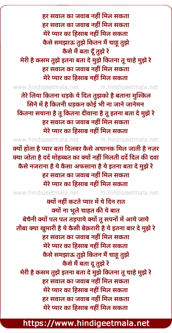 Lyrics of Har Sawal Ka Jawab - हर सवाल का जवाब