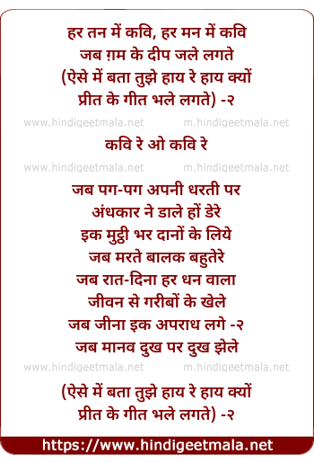 Lyrics of Har Tan Men Kavi, Kavi Re O Kavi Re - हर तन में कवि, हर मन में कवि