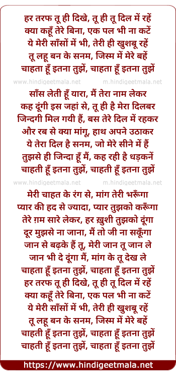 Lyrics of Har Taraf Tu Hi Dikhe, Tu Hi Tu Dil Me Rahe - हर तरफ तू ही दिखे, तू ही तू दिल में रहें