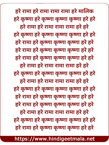 Lyrics of Hare Rama Hare Krishana - हरे रामा हरे कृष्णा