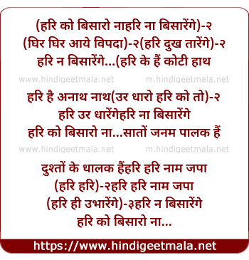 Lyrics of Hari Ko Bisaaro Naa - (हरि को बिसारो ना