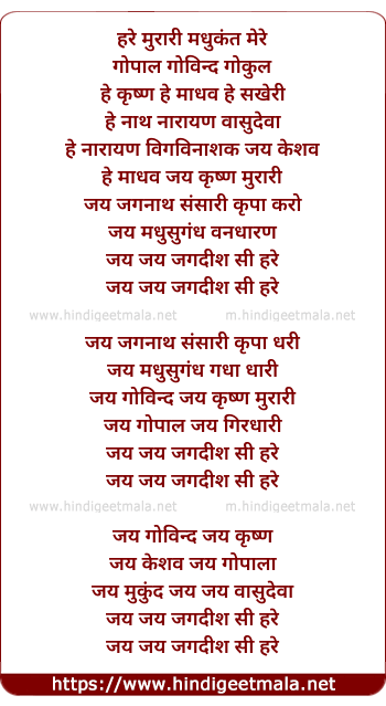 Lyrics of Hari Murare Madhukait Mare - हरे मुरारी मधुकंत मेरे
