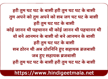 Lyrics of Hari Tum Ghat Ghat Ke Baasi - हरी तुम घट घट के बासी हरी तुम घट घट के बासी