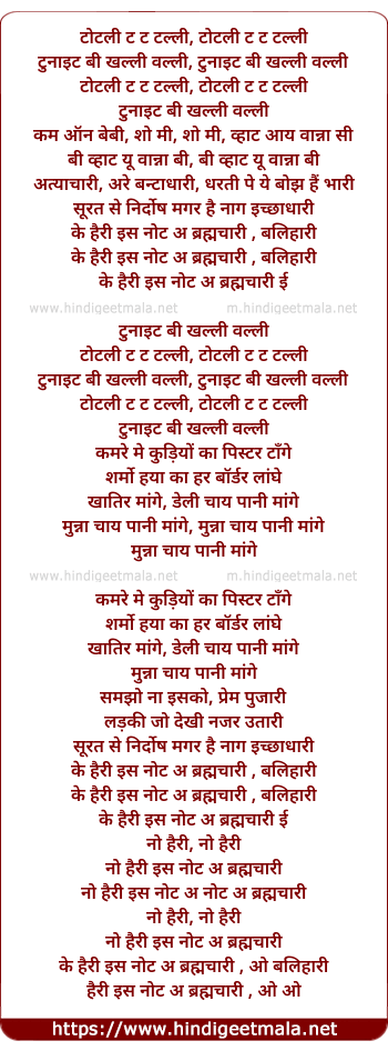 Lyrics of Harry's Not A Brahmachari (Remix) - टोटली ट ट टल्ली, टोटली ट ट टल्ली