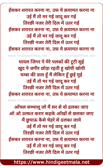 hanskar shararat karna naa, uff ye kayamat karna naa
