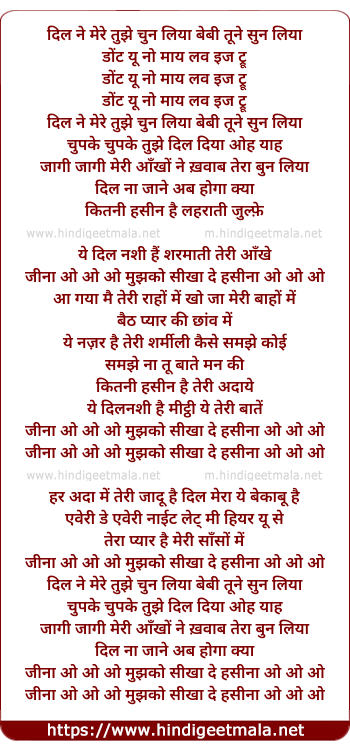 Lyrics of Haseena (Leslie Lewis) - दिल ने मेरे तुझे चुन लिया बेबी तूने सुन लिया