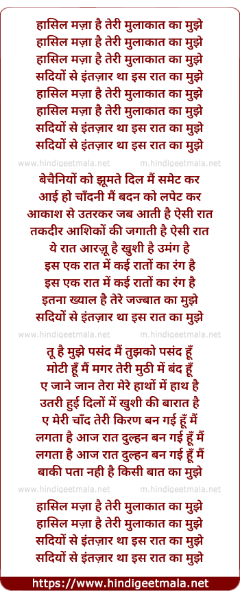 Lyrics of Hasil Maja Hai Teri Mulakat Ka Mujhe - हासिल मज़ा है तेरी मुलाकात का मुझे
