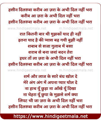Lyrics of Hasin Dilruba Karib Aa Jara - हसीन दिलरुबा करीब आ ज़रा