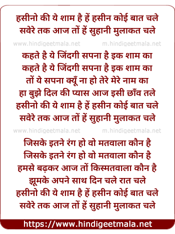 Lyrics of Hasino Ki Yeh Shaam Hai - हसीनो की ये शाम है