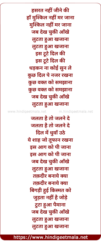 Lyrics of Hasrat Nahi Jeene - हसरत नहीं जीने की