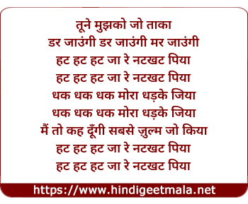 Lyrics of Hat Hat Hat Jaa Re Natkhat Piya - हट हट हट जा रे नटखट पिया