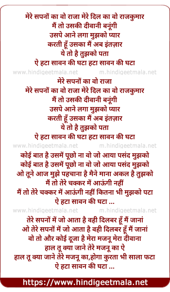 Lyrics of Hata Sawan Ki Ghata - हटा सावन की घटा