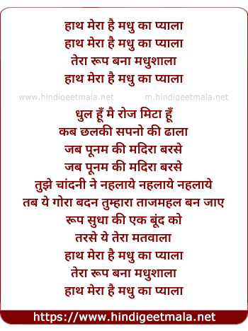 Lyrics of Hath Mere Hai Madhu Ka Pyala - हाथ मेरा है मधु का प्याला