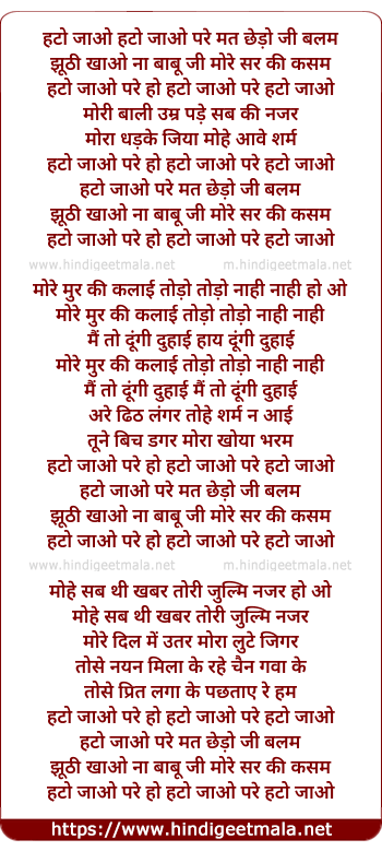 Lyrics of Hato Jaao Pare Mat Chedo - हटो जाओ परे मत छेड़ो