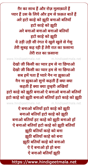Lyrics of Hato Kaahe Ko Jhuthi Banaao Batiyaan - हटो काहे को झूठी बनाओ बतियाँ