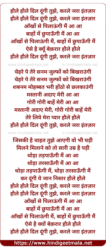 Lyrics of Haule Haule Dil Dungi - हौले हौले दिल दूंगी