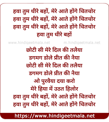Lyrics of Hava Tum Dhire Baho - हवा तुम धीरे बहों