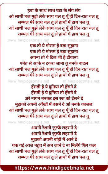 o saathi chal mujhe leke saath chal tu yun hi din-raat chal tu