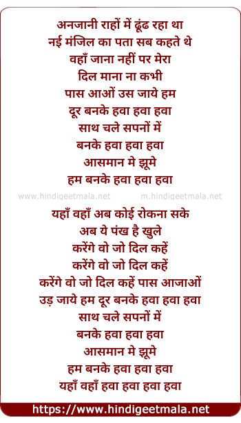 ud jaye hum dur banke hawa hawa hawa