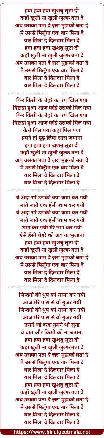 Lyrics of Hawa Hawaa - हवा हवा हवा खुशबु लुटा दी