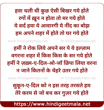 Lyrics of Hawaa Chali Thi Kuchh Aisi Bikhar Gaye Hote - हवा चली थी कुछ ऐसी बिखर गये होते