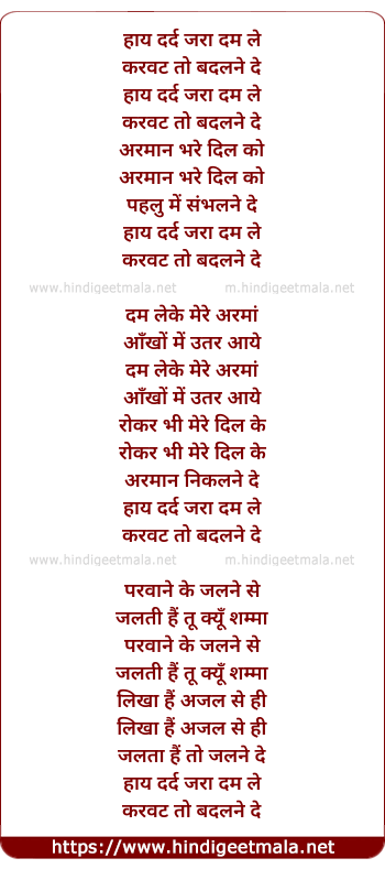 Lyrics of Haye Dard Zara Dum Le - हाय दर्द जरा दम ले