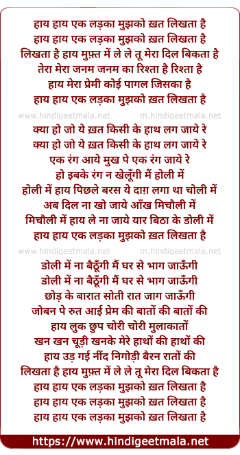 Lyrics of Haye Haye Ek Ladka Mujhko Khat Likhta Hai - हाय हाय एक लड़का मुझको ख़त लिखता है