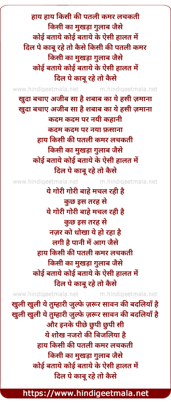 Lyrics of Haaye Haye Kisiki Patli Kamar - हाय हाय किसीकी पतली कमर