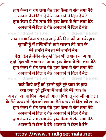 Lyrics of Haye Kaisa Ye Rog Laga Baithe - हाय कैसा ये रोग लगा बैठे