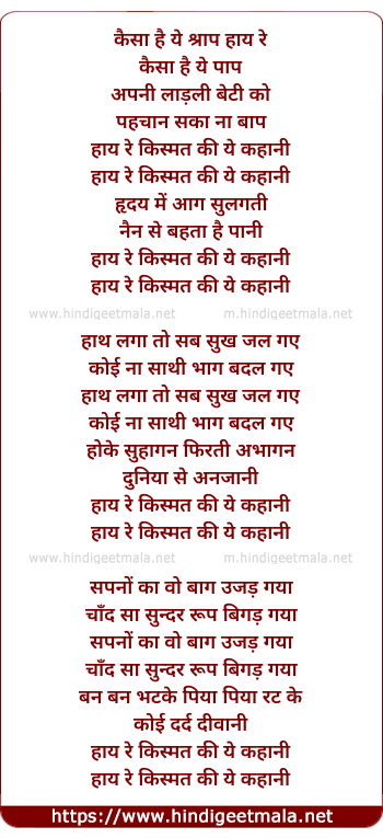 Lyrics of Haye Kismat Ki Ye Kahani - हाय किस्मत की ये कहानी