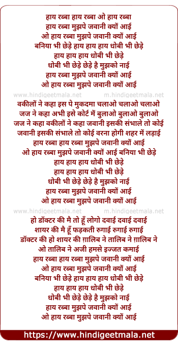 haye rabba haye rabba mujhpe jawani kyu aayi