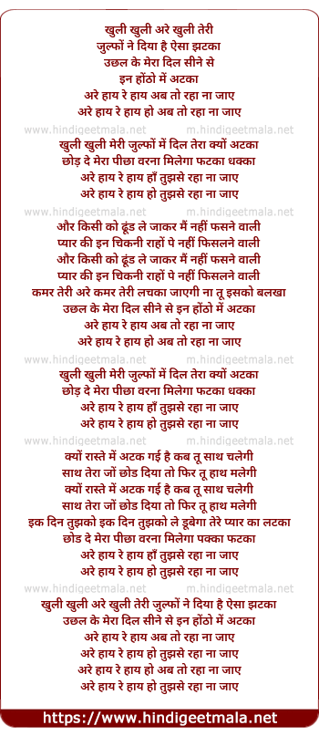 khuli khuli meri zulfo me dil tera kyu atka