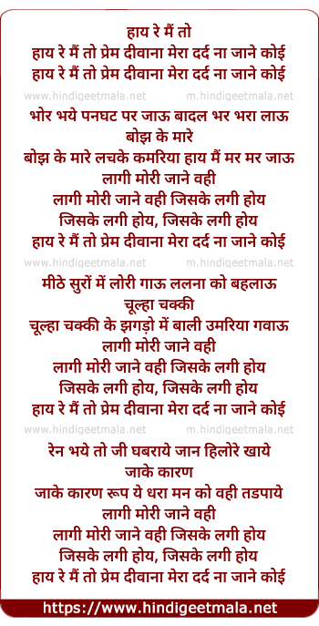 Lyrics of Haye Re Main To Prem Diwana - हाय रे मैं तो प्रेम दीवाना