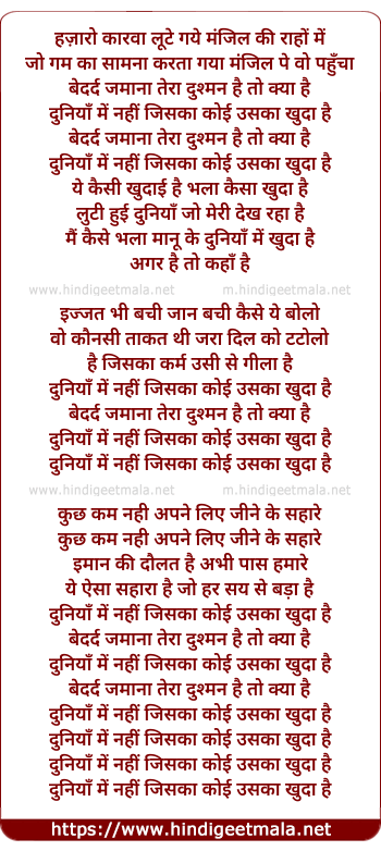 Lyrics of Hazaro Karwa Lute Gaye Manzil Ki Raho Me - हज़ारो कारवा लूटे गये मंजिल की राहों में