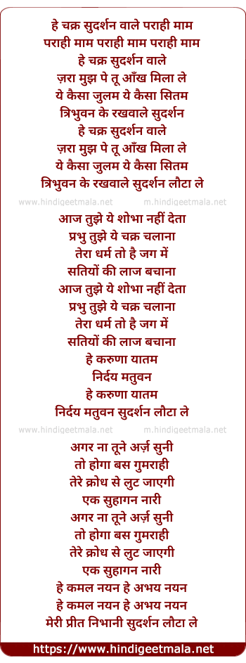 Lyrics of He Chakra Sudarshan Wale - हे चक्र सुदर्शन वाले