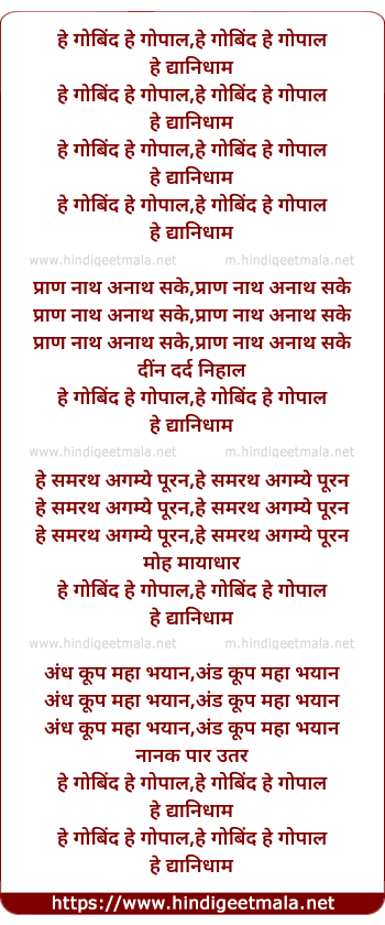 Lyrics of He Govind He Gopal - हे गोविन्द हे गोपाल